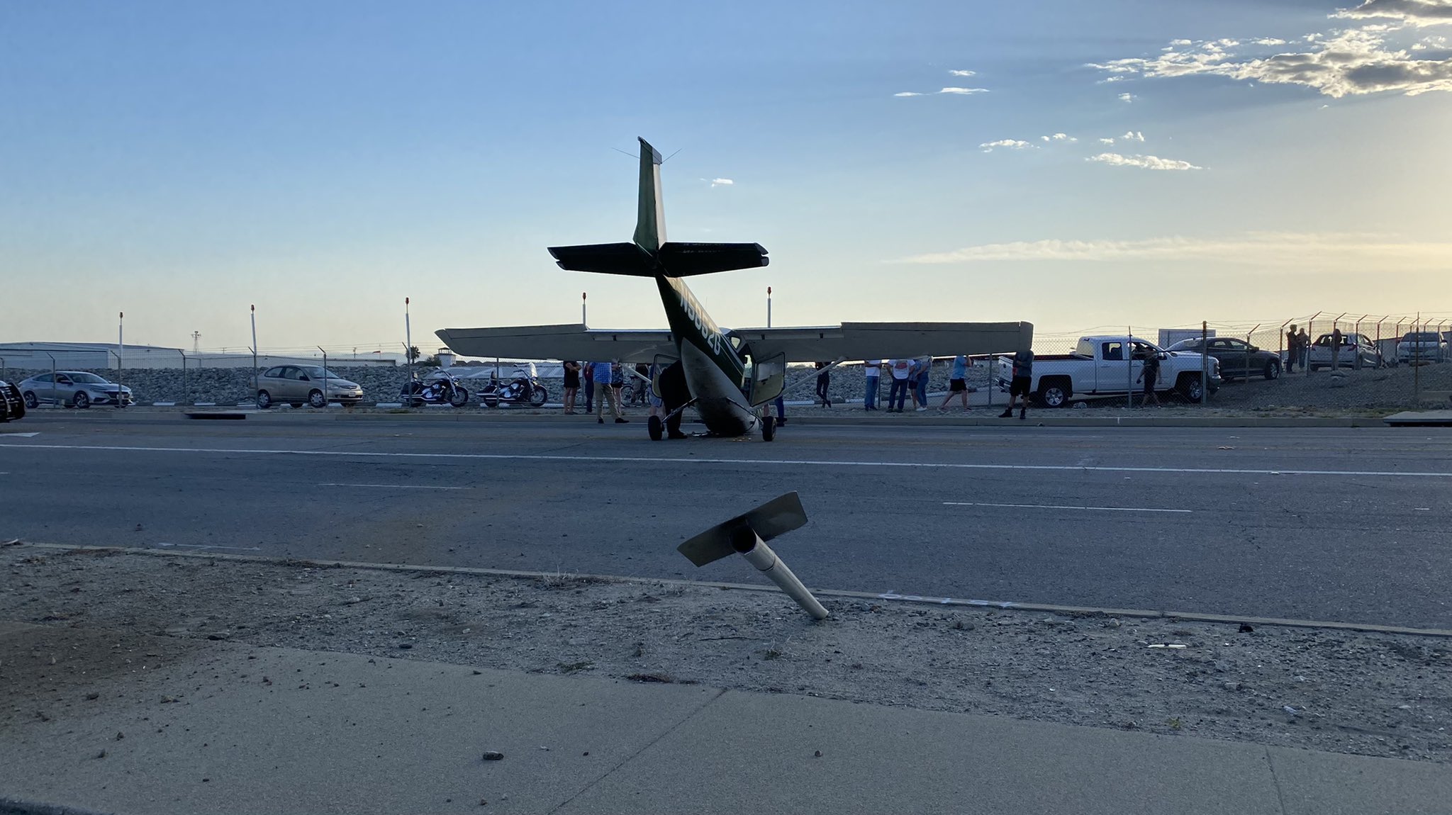 Os policiais chegaram ao local e encontraram o monomotor Cessna 150K, prefixo N5852G, do Foothill Flying Club, de nariz para baixo, no meio da Benson Avenue, próximo ao Aeroporto Cable, em Upland, na Califórnia.
