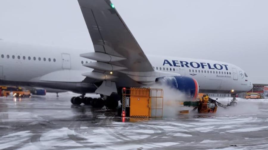 Um avião da Aeroflot, que deveria deixar Sheremetyevo para o resort mexicano de Cancún, colidiu com um caminhão para descongelamento durante o taxiamento.