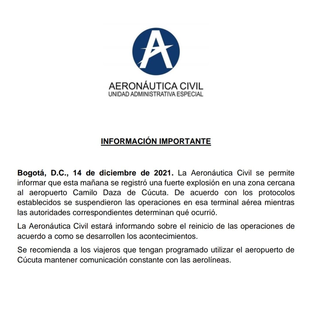 Ao menos três pessoas morreram em duas explosões registradas em uma área próxima ao aeroporto Camilo Daza em Cúcuta, na Colômbia, nesta terça-feira (14), informaram as autoridades locais.