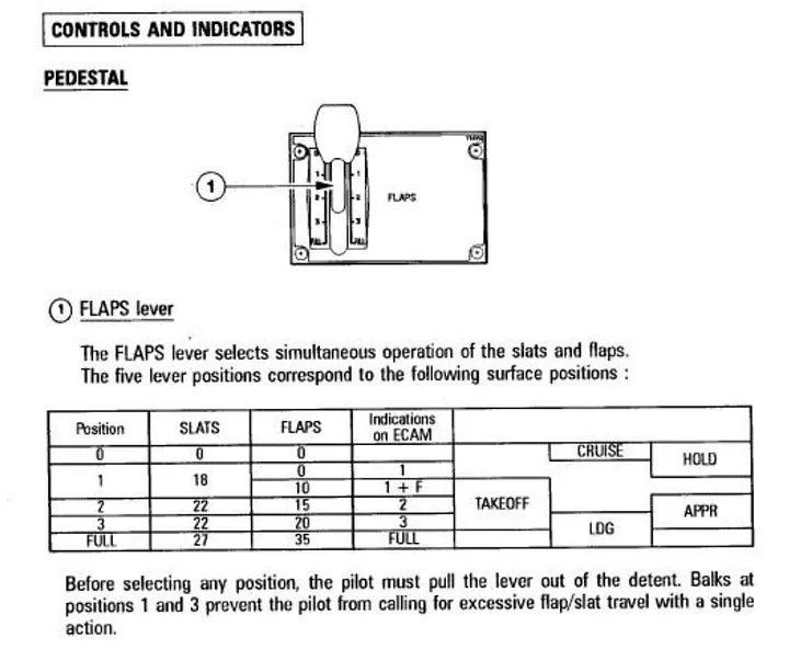 | Uma análise das posições dos flaps no Airbus A320 (Imagem: Bahrein AIB) |