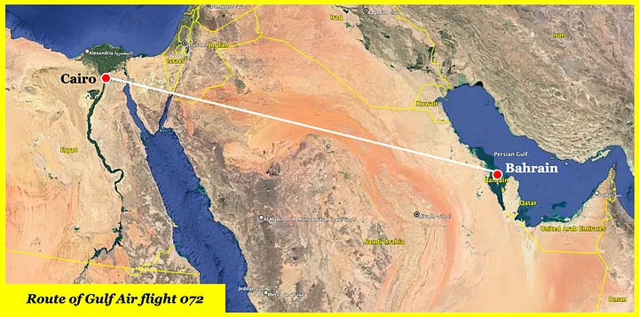 A Gulf Air retirou o número do voo 072 (GF072) e o substituiu pelo 070 (GF070) para voos de regresso a partir de Cairo para Bahrain.