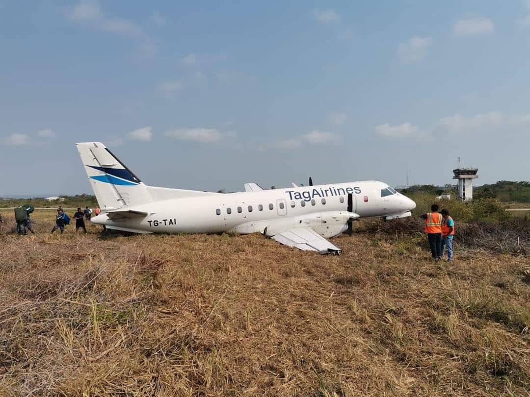 Francis Argueta, diretor de Aeronáutica Civil, informou que a aeronave Saab 340A, prefixo TG-TAI, da TAG Airlines - Transportes Aéreos Guatemaltecos, teve um defeito no trem de pouso em um voo de Cancún, no México. Ele acrescentou que 17 passageiros viajavam na aeronave, que saíram ilesos, assim como a tripulação. Ele indicou que o aeroporto estava temporariamente fechado.
