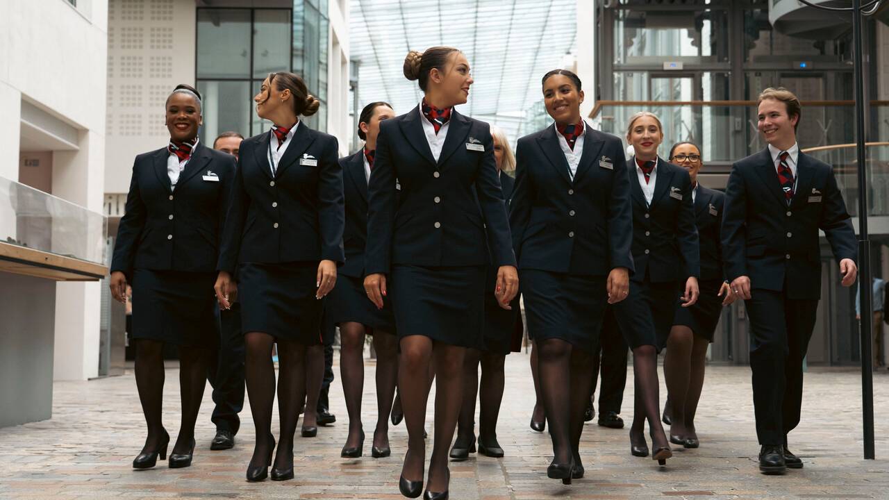 | Tripulação de cabine da British Airways caminhando juntos (Foto: British Airways) |