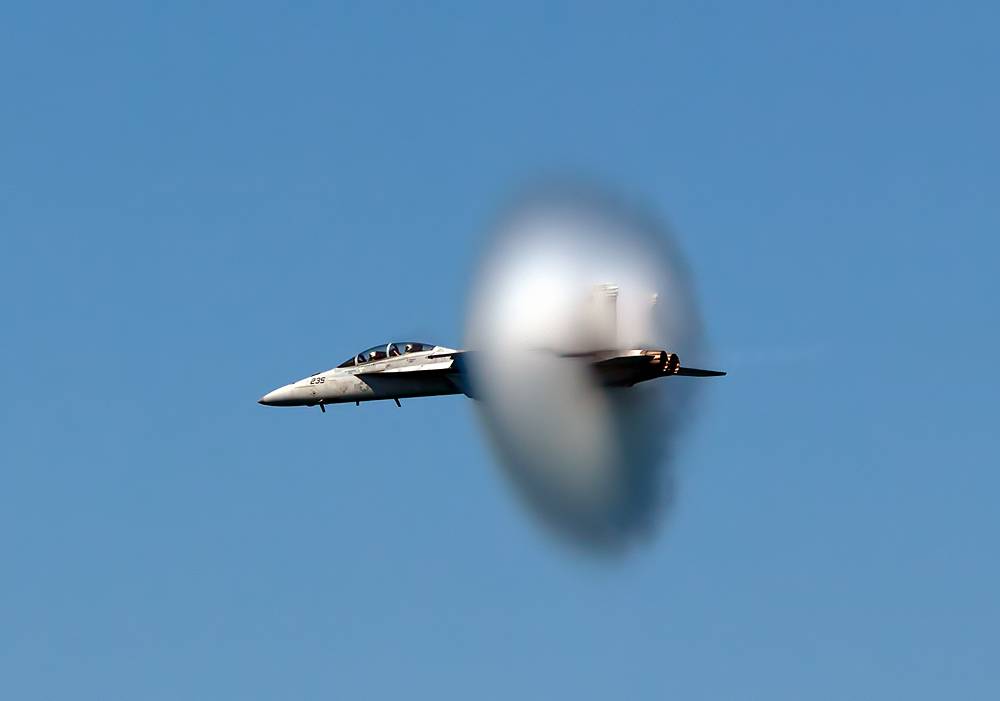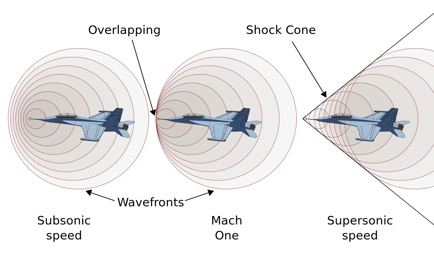 | Como a aeronave se fecha em suas ondas de pressão com o aumento da velocidade (Imagem: Chabacano via Wikimedia) |