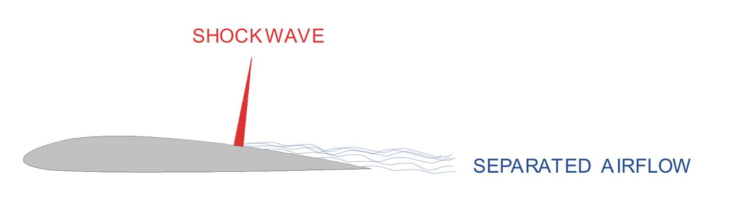 | As ondas de choque podem causar a separação do fluxo, o que pode levar a um estol de alta velocidade (Foto: Oxford ATPL) |