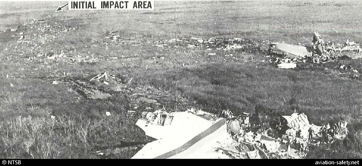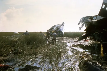 A fuselagem se desintegrou e enormes pedaços do L-1011 caíram nas águas rasas, espalhando destroços e passageiros na escuridão. Ondas de combustível percorreram a cabine, seguidas pelo calor abrasador das chamas. Finalmente, os destroços mutilados pararam em meio à lama e à grama, deixando um rastro de destruição que se estendia por várias centenas de metros, uma paisagem infernal medonha e silenciosa repleta de mortos e moribundos.