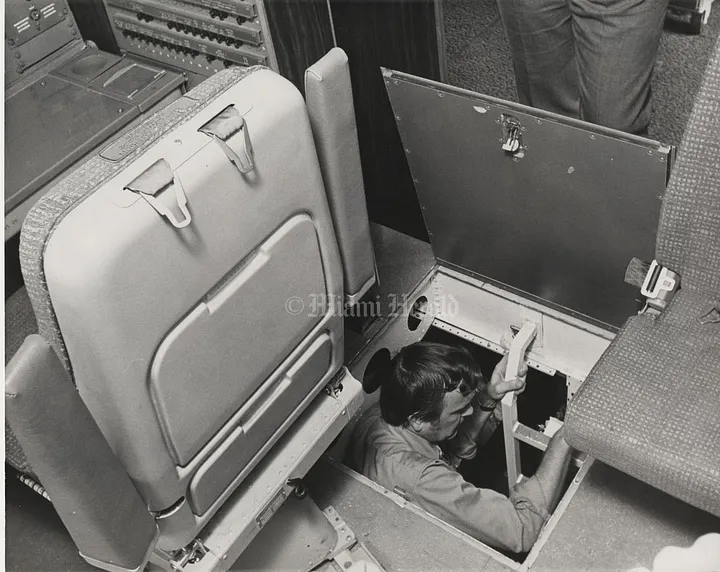 | Um homem sobe no “buraco do inferno” em um L-1011 (Miami Herald) |