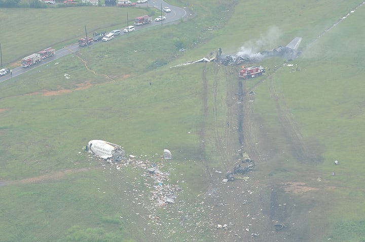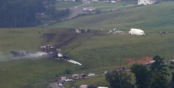 Quando amanheceu sobre a cena do acidente, alguns focos de incêndio ainda queimavam perto das asas (Foto: AP)