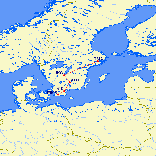 O voo 618 deveria voar do Aeroporto Malmö Sturup para o Aeroporto Bromma de Estocolmo, com paradas intermediárias no Aeroporto Kristianstad, Aeroporto Växjö Småland e Aeroporto Jönköping.