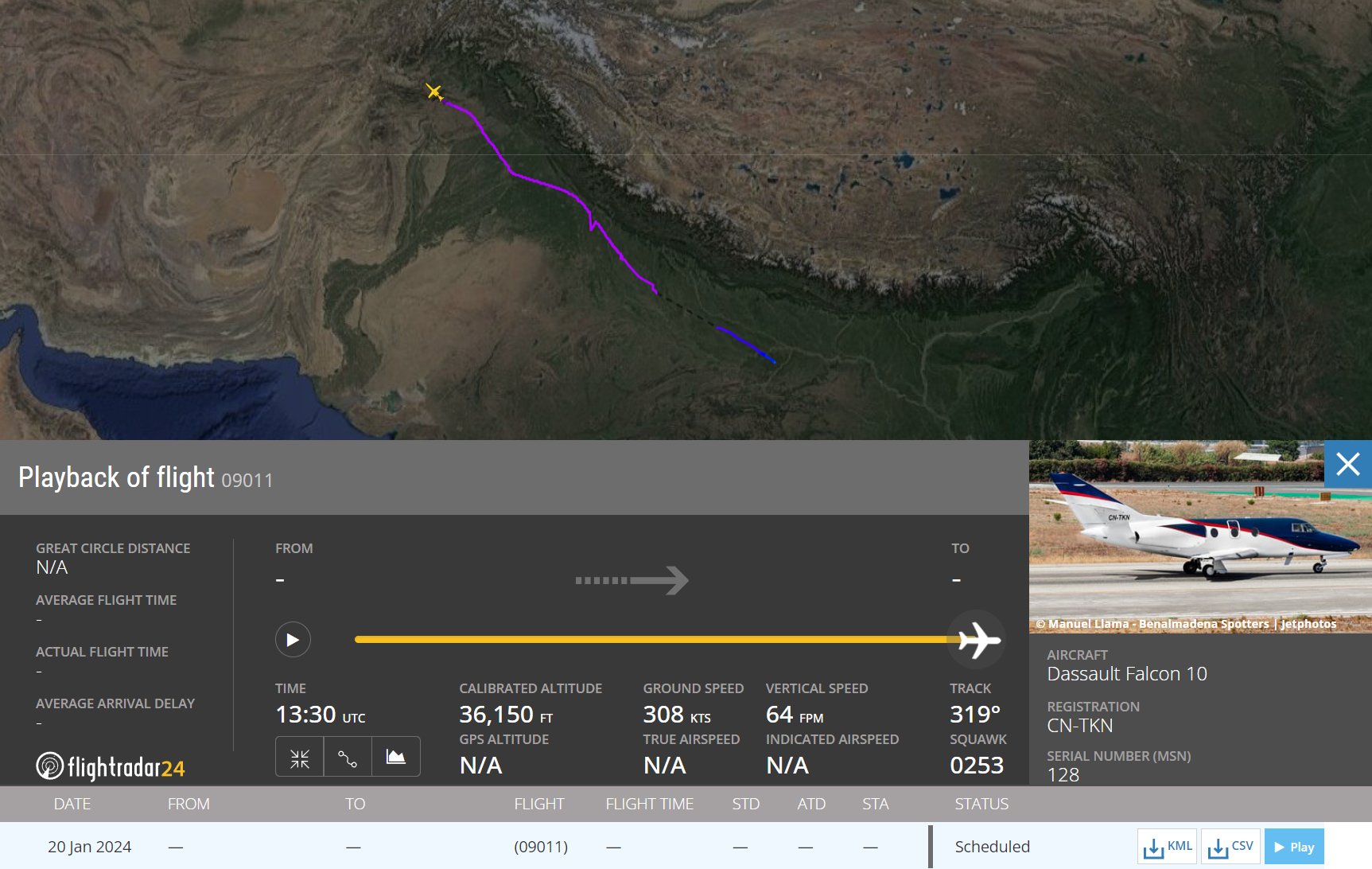 “Na noite de sábado, 20 de janeiro, enquanto estava no espaço aéreo do Afeganistão (…), uma aeronave Falcon 10 registrada no registro estatal de aeronaves civis da Federação Russa parou de se comunicar e desapareceu dos radares”, explicou Rosaviatsia em um comunicado. declaração.