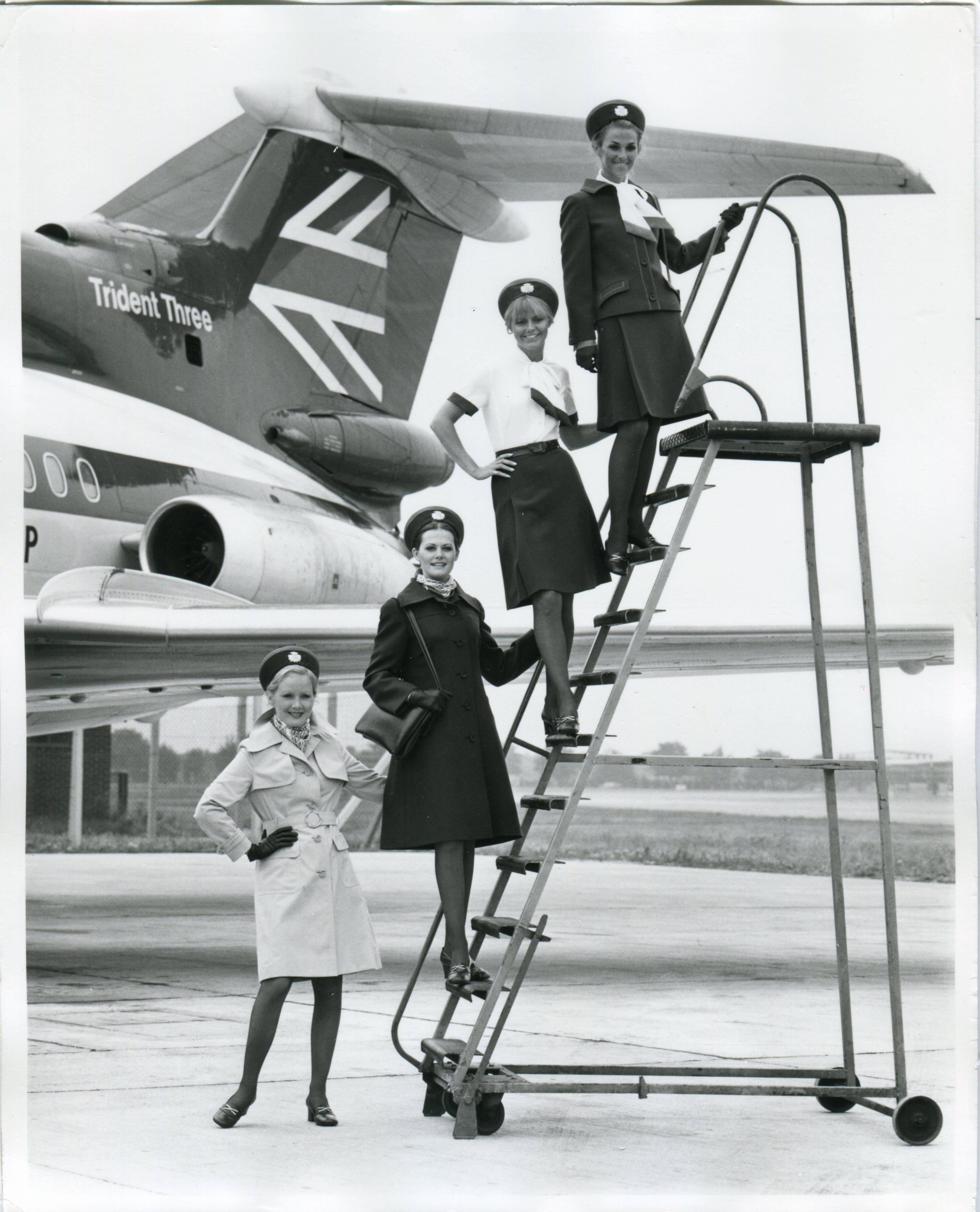 | Comissárias de bordo de um avião Hawker Siddeley Trident (Foto: British Airways) |
