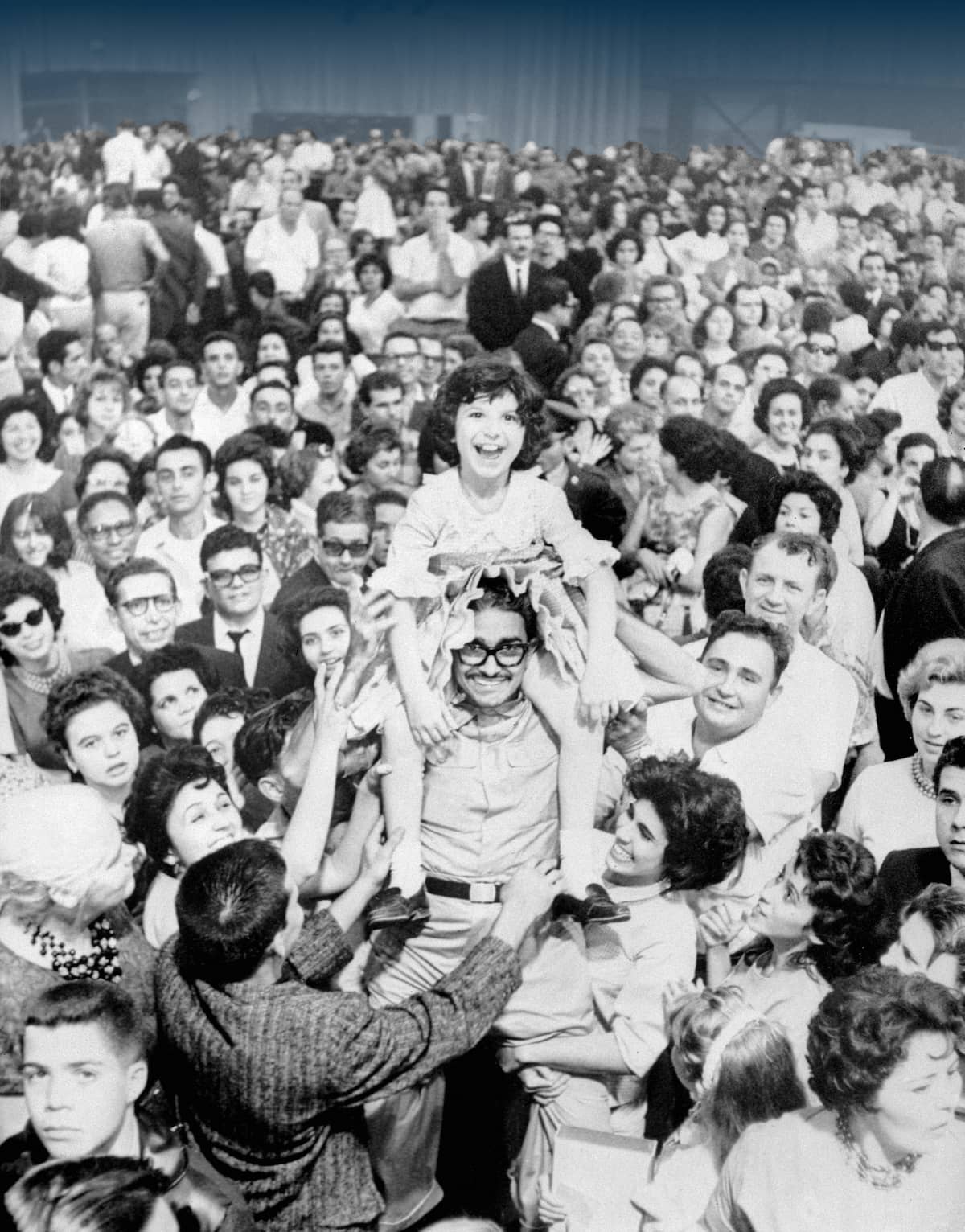 | Os prisioneiros foram recebidos com comoção por familiares e amigos em Miami na véspera e no dia de Natal de 1962 |