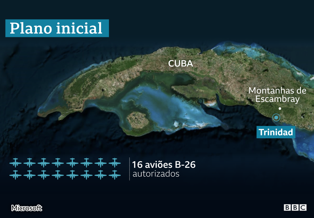 O plano original da CIA e do governo Eisenhower era que os exilados partissem de Puerto Cabezas, na Nicarágua, e desembarcassem perto da cidade de Trinidad, no sul de Cuba.
