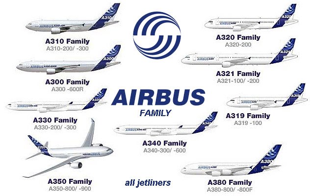 A mesma coesão seguiu na família de aeronaves da Airbus.