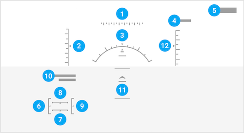 - Indicadores de flap e trem de pouso: onde os flaps e trens de pouso são configurados
