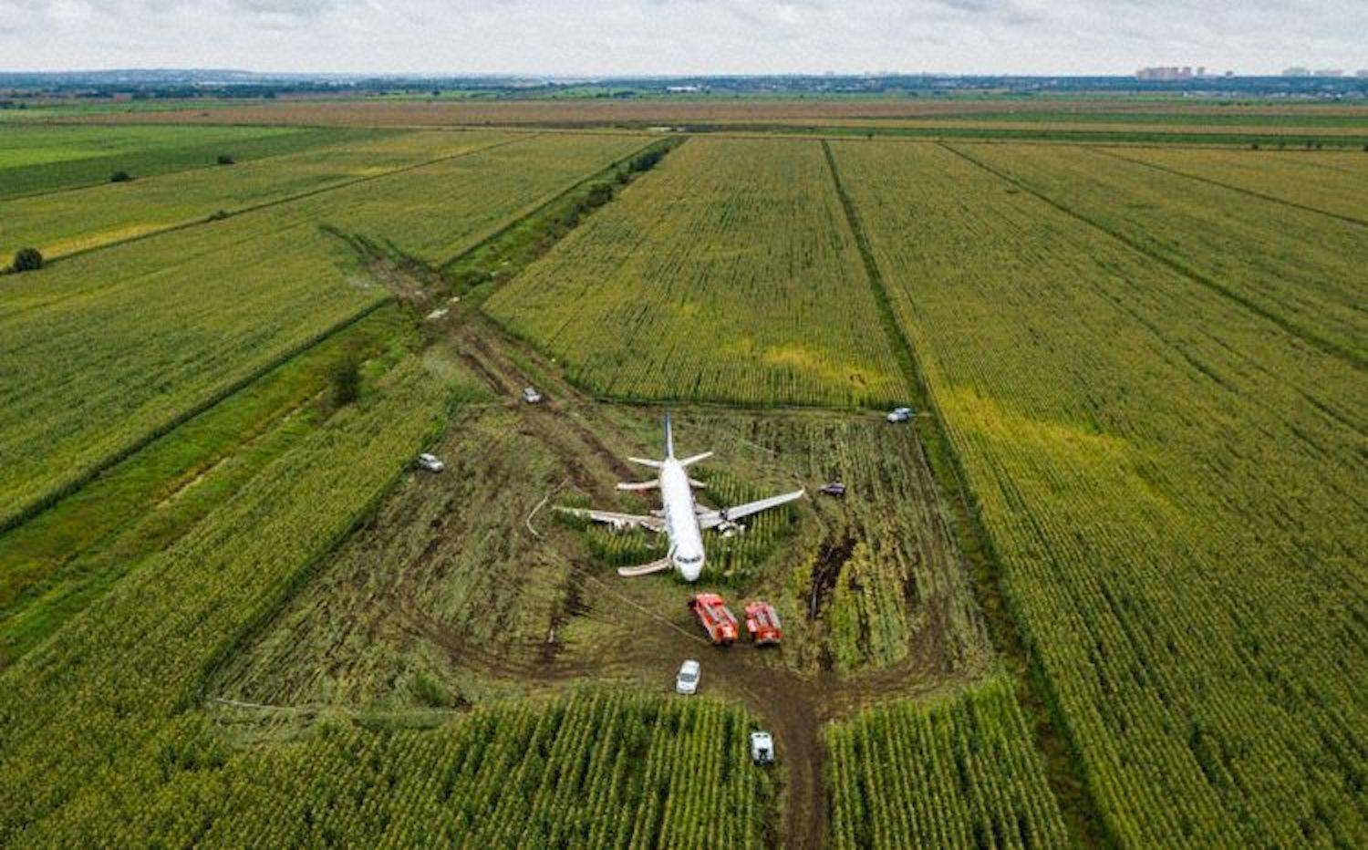 | Airbus A321 da Ural Airlines num campo de milho (Foto: The Aviation Herald) |