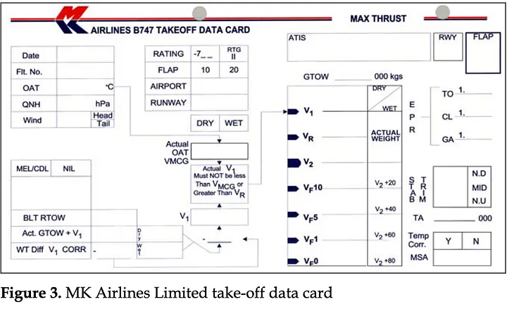 O cartão de dados de decolagem da MK Airlines (Imagem: TSB)
