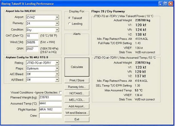 Após isso, ele teria clicado no botão “calcular”, o que geraria um peso máximo permitido dadas as restrições da pista e configuração. O trabalho de Keogh teria sido comparar esse peso com o peso real para determinar se a decolagem era possível. Nesse caso, o máximo gerado teria sido 321 toneladas métricas, menos que o peso real do avião, o que significa que o avião agora estava pesado demais para usar uma decolagem reduzida (que, para que você não precise de um lembrete, era a configuração para a qual a página teria sido padronizada).