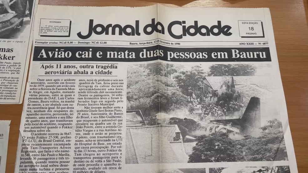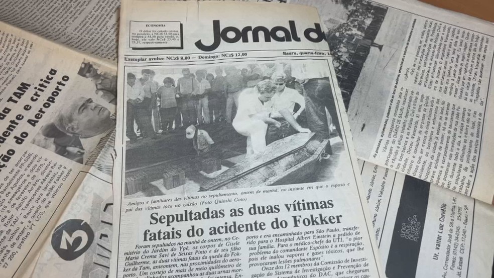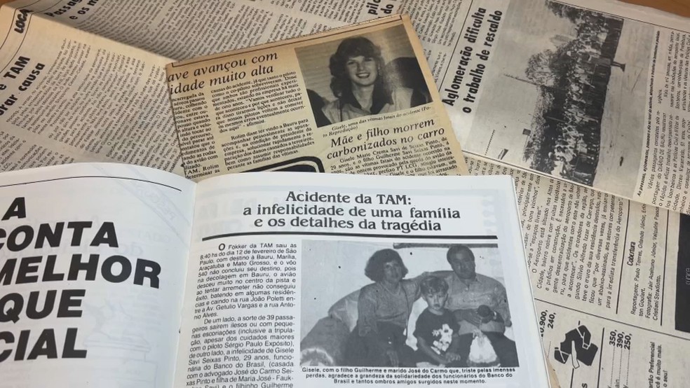 | Jornais noticiam mortes de Gisele e Guilherme, mãe e filho, após acidente aéreo em Bauru (Imagem: Paulo Piassi/g1) |