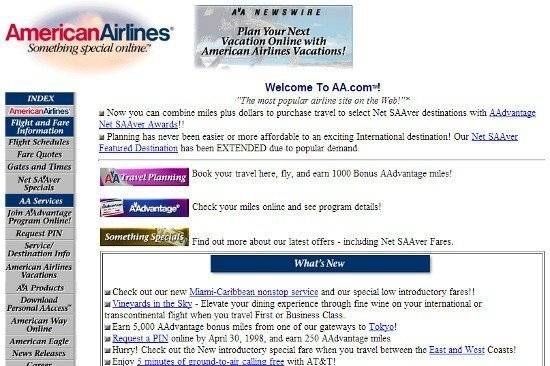 Na década de 1990, a American Airlines fez avanços significativos na inovação digital. Em 15 de outubro de 1998, tornou-se a primeira companhia aérea a oferecer bilhetes eletrônicos em todos os 44 países que atendia, simplificando o processo de reserva para seus clientes. O site disponibilizou a programação de voos, informações de destino, tarifas e comunicados de imprensa, para citar algumas opções para os viajantes curiosos.