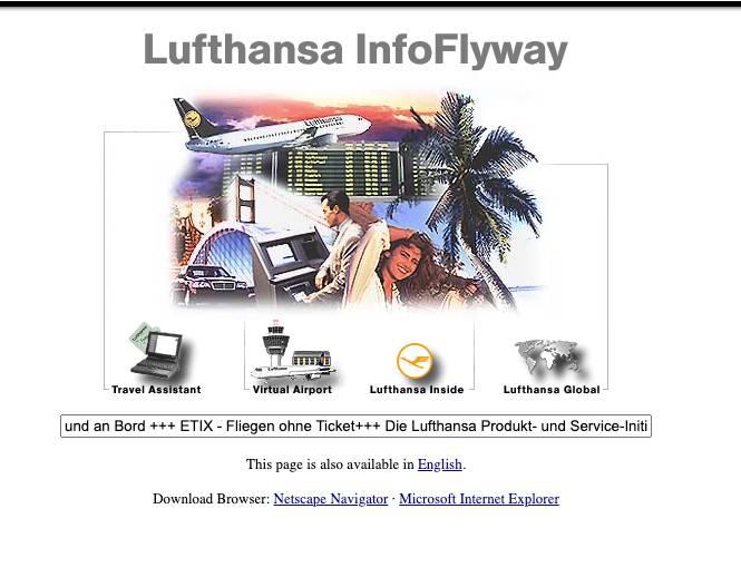 A metade da década de 1990 também tinha recursos limitados sem os quais não conseguimos imaginar fazer login! Reservas e reservas não começaram a aparecer em massa até o final da década de 1990, embora alguns sites tenham incorporado esses recursos com sucesso. 'Formulários da web' on-line eram usados para reservar esses voos, então o cliente inseria suas solicitações lá - não tão automatizado quanto hoje, com certeza.
