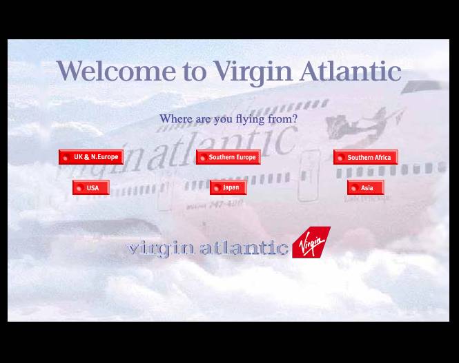 A Virgin Atlantic lançou seu site em 1997 seguindo muitas outras companhias aéreas na demanda online por acesso a informações específicas da companhia aérea. O site exibia o famoso Boeing 747 e abas básicas perguntando de onde você estava viajando. Essa transformação para a era digital marcou a capacidade dos usuários de perguntar sobre informações da empresa, horários de voos, destinos e serviços da companhia aérea.