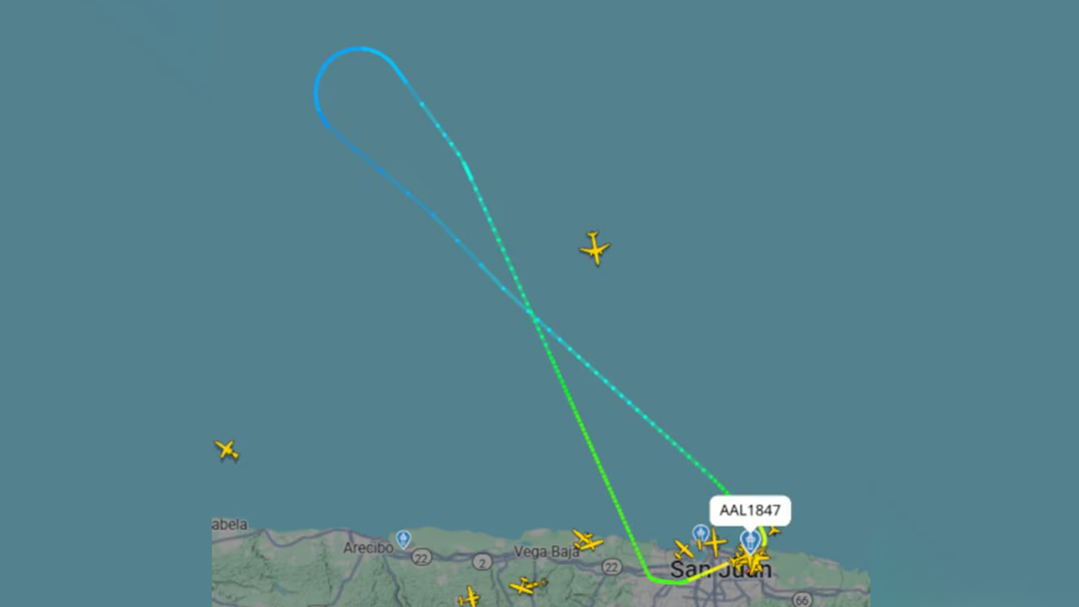 | Trajeto mostra retorno do avião para Porto Ricos após "alerta" de passageira (Imagem: Reprodução/Flightradar24) |