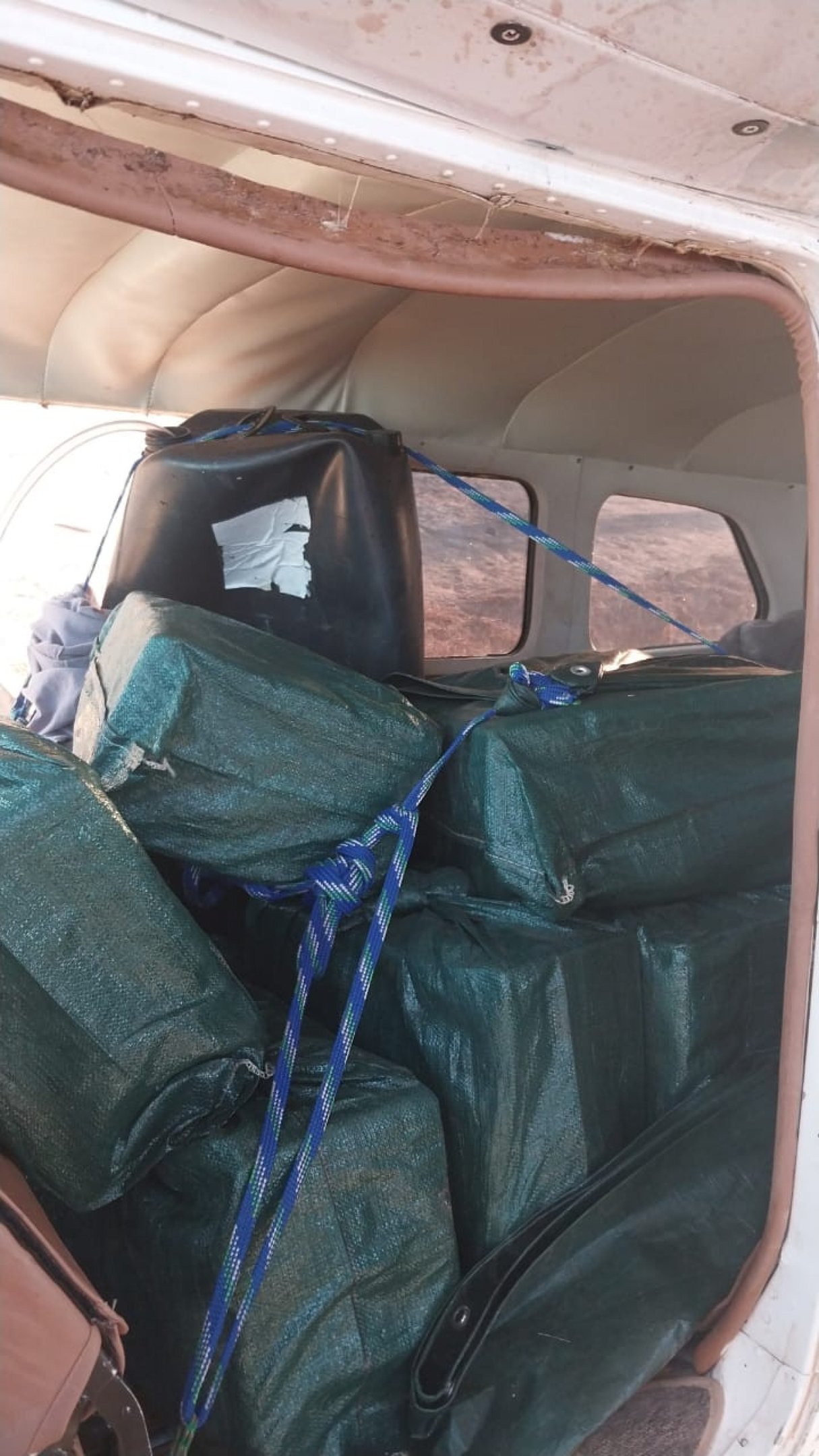 Os 434,945 quilos de pasta base de cocaína, acondicionados em 430 tabletes, estavam dentro do avião encontrado na noite de quinta-feira (28) pela polícia após ser chamada por moradores.