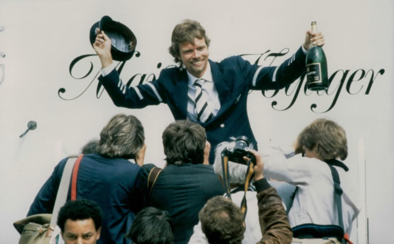 Richard Branson comemorando a conclusão do primeiro voo da Virgin Atlantic (Foto: Virgin)