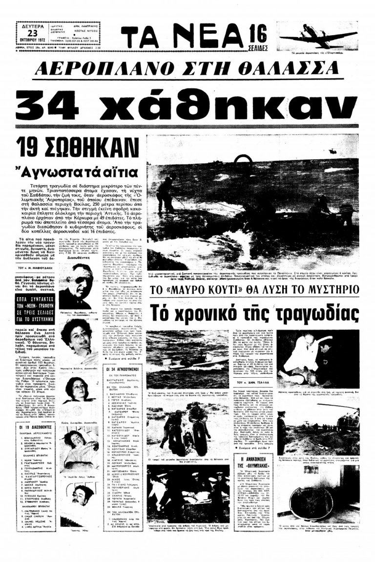 Christos Gaganatsos trabalhou como funcionário em uma boutique em Corfu durante o verão. Ele pegou o avião para retornar a Atenas para seus estudos. – O voo de Corfu foi normal? – Muito normal. Às 21h15, fomos notificados de que o avião teria um atraso de 15 minutos no pouso, devido ao congestionamento no aeroporto de Hellinikon. Não nos preocupamos nem quando o avião começou a perder altitude. Pensamos que o atraso de 15 minutos teria sido encurtado no tempo e que o pouso estava começando. Não conseguíamos ver lá fora porque estava chovendo e escuro. De repente, sacudimos e a fuselagem começou a encher de água. Uma mulher estrangeira abriu a porta traseira do avião. Foi por lá que eu saí. – Como você chegou à porta? – Nadando. – Na fuselagem? – Na verdade, na fuselagem. Um estrondo terrível foi ouvido.