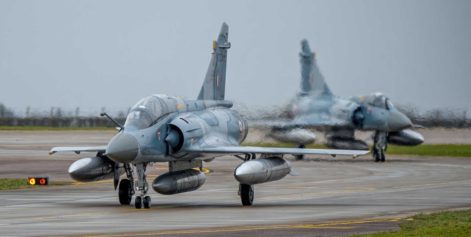 | O Dassault Mirage da Força Aérea Indiana taxiando logo após pousar na base (Crédito: Força Aérea dos EUA) |
