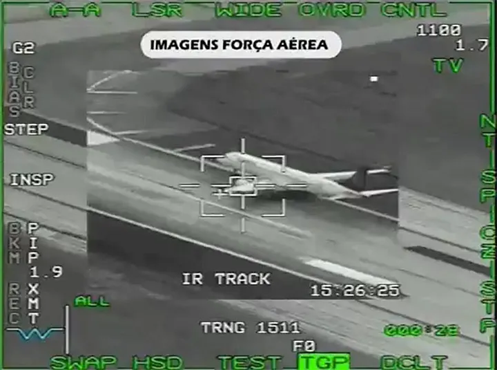 | O voo 1388 chega à pista, visto de um dos F-16 |