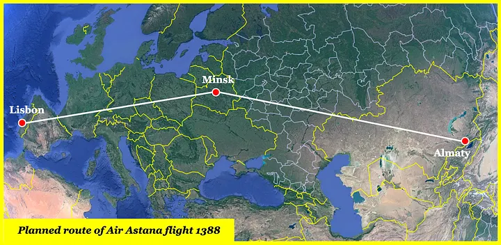 Enquanto isso, no Cazaquistão, o capitão da Air Astana, Vyacheslav Aushev, tinha acabado de completar um voo de rotina quando recebeu uma missão surpresa. O capitão original que deveria voar P4-KCJ de Portugal já não estava disponível devido ao atraso, e Aushev foi escolhido para ocupar o seu lugar no dia 11 de novembro. A juntar-se a Aushev na viagem de Lisboa a Almaty via Minsk estariam os tripulantes de apoio originais, incluindo o primeiro oficial Bauyrzhan Karasholakov e um piloto de segurança, o primeiro oficial Sergey Sokolov. Nenhum deles era novo no E190, e Sokolov, em particular, era conhecido por seu amplo conhecimento de sistemas.