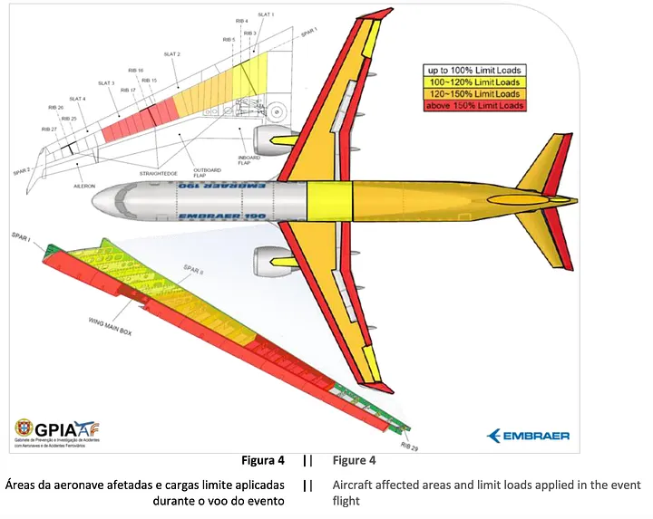 | Mapa dos danos estruturais sofridos pelo avião (GPIAAF e Embraer) |