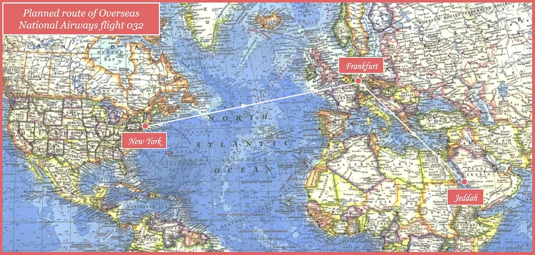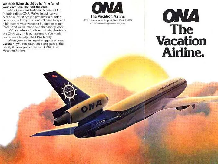 Em 1973, a companhia aérea charter de carga e passageiros Overseas National Airways, com sede em Nova York, fez a compra mais ambiciosa de sua história, recebendo dois novos McDonnell Douglas DC-10 de fuselagem larga. Juntando-se a uma frota muito maior de DC-8, os DC-10 foram destinados ao mesmo trabalho que todos os aviões de propriedade da Overseas National Airways, ou ONA – não voos regulares de passageiros, mas serviços “suplementares”, incluindo fretamento e arrendamento de aeronaves de grande porte. arranjos.