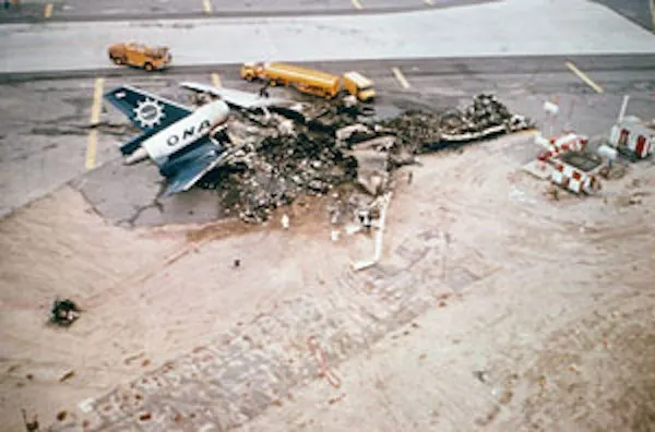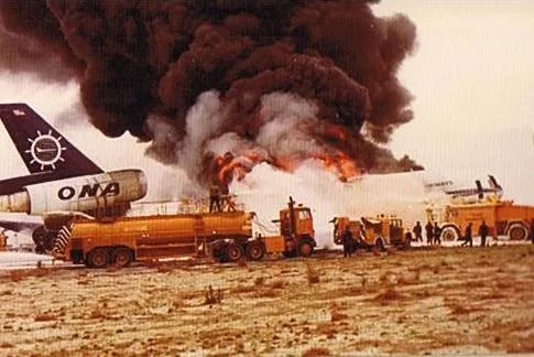 No dia 12 de novembro de 1975, um DC-10 carregado com funcionários de uma companhia aérea com destino à Arábia Saudita atingiu um bando de gaivotas enquanto decolava do Aeroporto Internacional John F. Kennedy, fazendo com que o motor nº 3 explodisse violentamente. À medida que as chamas irrompiam do motor destruído, os pilotos tentaram rejeitar a decolagem, apenas para descobrir que seu sistema hidráulico estava falhando, suas rodas estavam danificadas e não havia como parar o jato de fuselagem larga totalmente carregado antes do final da pista. Em um último esforço para evitar a colisão com uma cerca anti-explosão, os pilotos tentaram uma saída em alta velocidade para uma pista de táxi, mas no processo o trem de pouso desabou, os tanques de combustível romperam e o avião derrapou até parar, cercado por chamas.