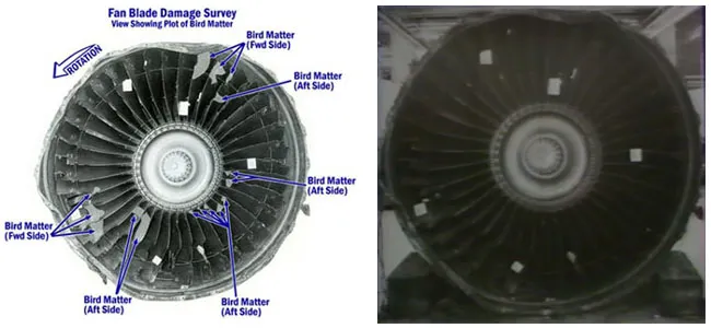 No entanto, o aparente desacordo entre o NTSB e a GE sobre as causas fundamentais do acidente não parece ter sido resolvido. No interesse da integridade, vale a pena colocar esses argumentos em perspectiva. Embora a GE tenha apresentado evidências do que alegou serem danos de “corpo duro” às pás do ventilador antes da ingestão das aves, sua alegação de que as aves não poderiam ter causado danos tão graves às pás do ventilador merece algum ceticismo.