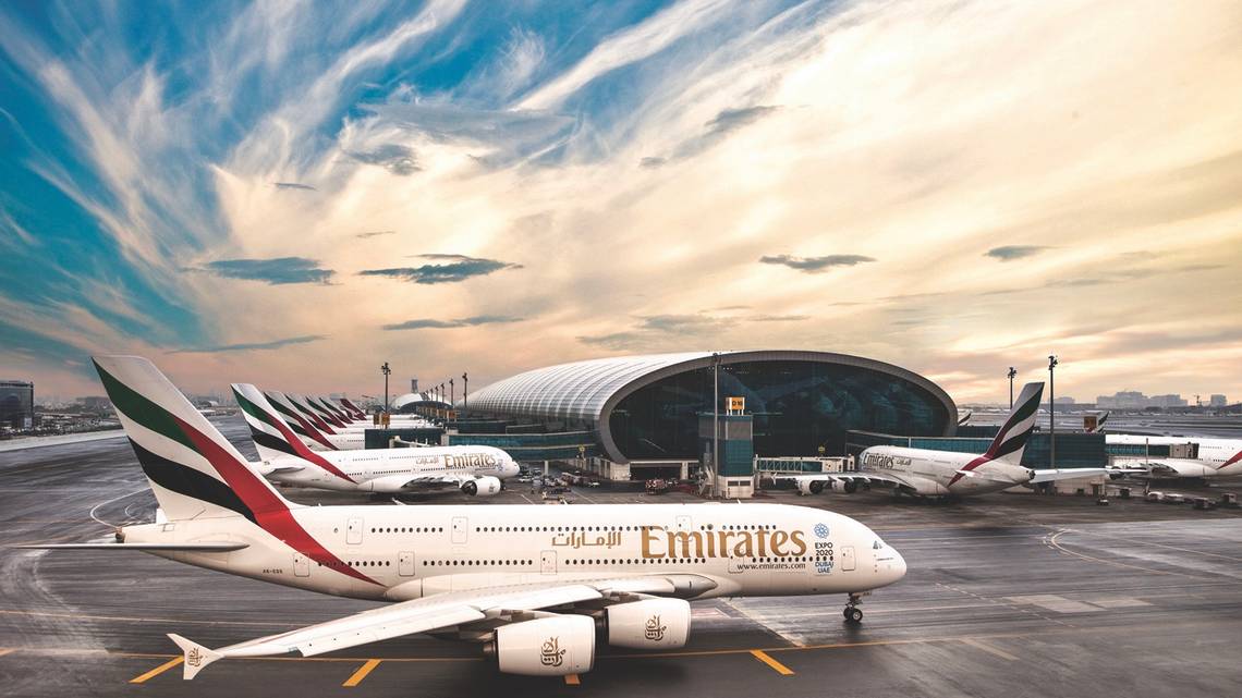 | Frota A380 da Emirates no Aeroporto de Dubai (Foto: Emirates) |