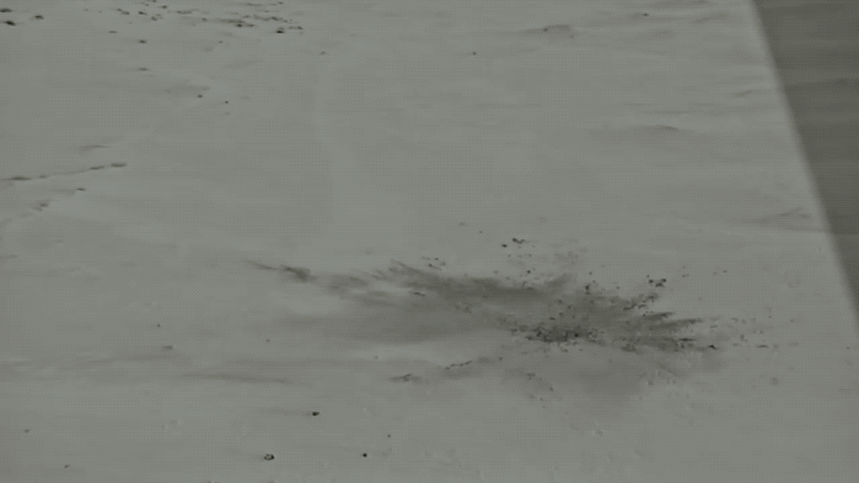 O impacto de alta velocidade explodiu uma cratera por vários metros de neve e no cascalho abaixo, compactando o avião como um acordeão no buraco antes de cuspir os destroços mutilados de volta, deixando uma mancha negra na neve como o único sinal de sua passagem .