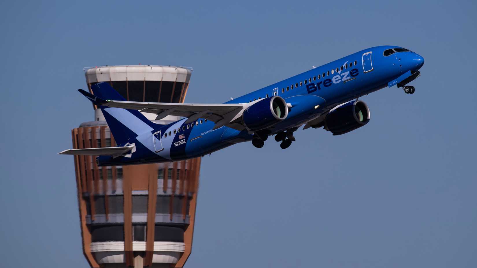 | Airbus A220-300 da Breeze Airways partindo de PHX (Foto: Robin Guess/Shutterstock) |