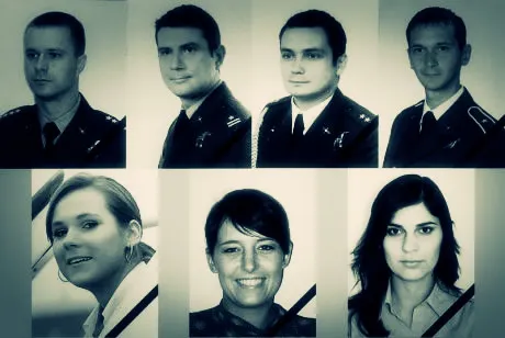 Os quatro pilotos e três comissários de bordo que compunham a tripulação do voo malfadado. (Lenta.ru)