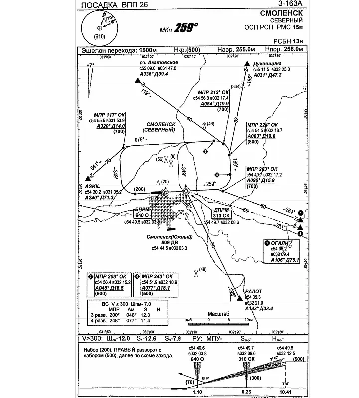 O mapa de aproximação usado pelos pilotos para o voo para Smolensk Norte (MAK)