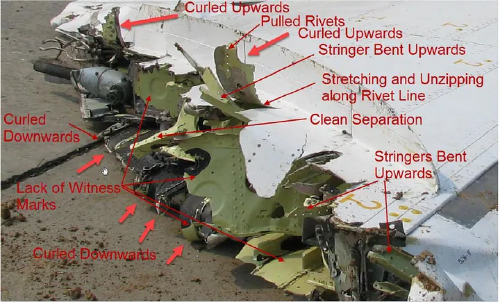 Os investigadores estavam obviamente cientes de que qualquer teoria sobre bomba teria que explicar por que a ponta da asa esquerda foi a primeira peça a sair do avião. Embora muito tenha sido dito sobre o fato de que várias peças foram movidas de seus locais originais durante a resposta desorganizada à emergência, isso tem pouca relação com o fato de que qualquer bomba teria que ter sido localizada dentro da estrutura da asa, não na cabine ou no compartimento de carga.