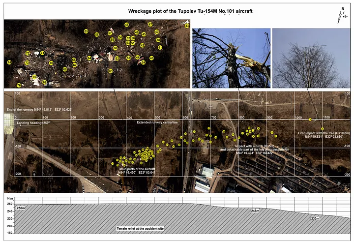 Além disso, as autoridades russas deram à tripulação do voo 101 uma carta de aproximação desatualizada para Smolensk Norte que incluía auxílios à navegação desativados em 2009 e careciam de informações críticas, como o gradiente de descida correto. E embora a árvore que o avião atingiu não fosse uma delas, havia inúmeras outras árvores perto do limite da pista que invadiam a área de segurança sob o caminho de aproximação final e deveriam ter sido removidas.
