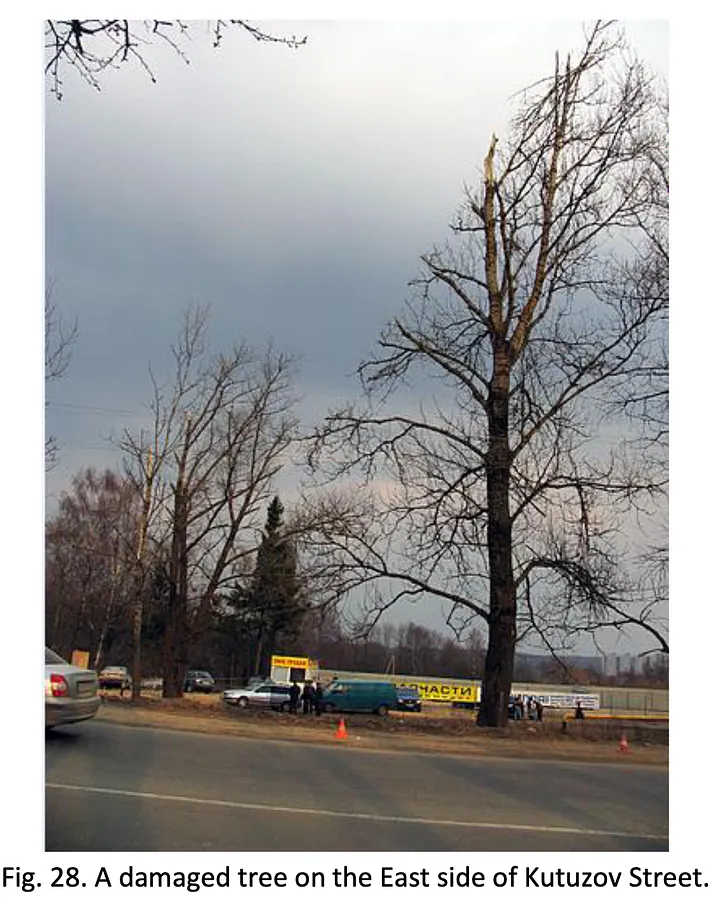 Além disso, o diâmetro da bétula na área onde foi atingida pela asa era de 30–40 centímetros, facilmente o suficiente para causar danos catastróficos à ponta da asa do Tu-154. A única razão pela qual há qualquer dúvida sobre a capacidade de uma árvore média de lidar com esse dano é porque o impacto da árvore não se encaixa na teoria da bomba. Caso contrário, praticamente todo acidente de CFIT em uma área florestal teria que ser reexaminado.