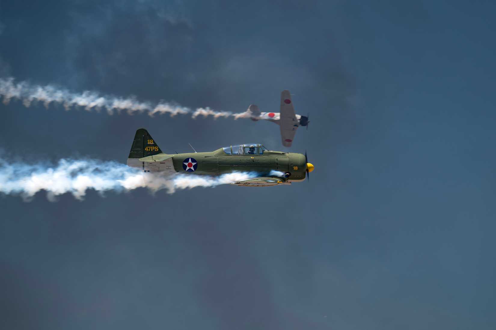 “As aeronaves japonesas, incluindo caças A6M Zero, bombardeiros torpedeiros e bombardeiros de mergulho, eram na verdade aeronaves de treinamento modificadas da RCAF Harvard (T-6 Texan) e BT-13 Valiant”, explica um artigo de Pearl Harbor sobre a produção do filme. Essas réplicas de Zeros e “Vals” voavam em formações coordenadas para representar a força de ataque.