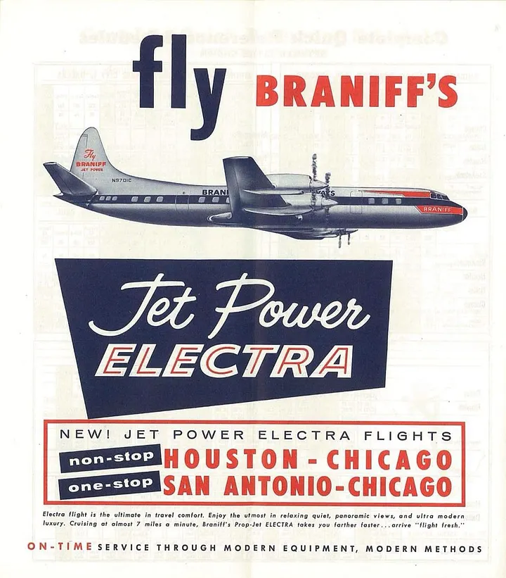 A rota do voo 352 dentro do Texas (Trabalho próprio + mapa da National Geographic, logotipo cortesia da Braniff) |