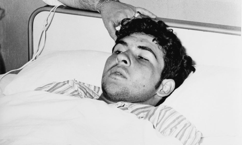| Armando Socarras Ramirez no hospital em Madrid após voar clandestino de Cuba (Foto: Bettmann) |