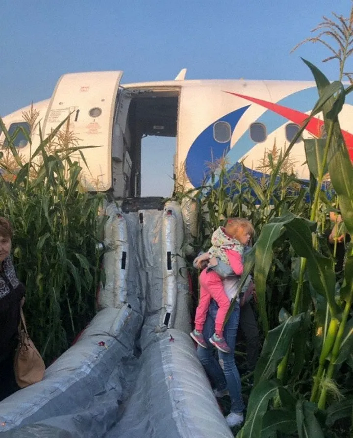 Assim que o avião parou, os comissários de bordo abriram as portas e abriram os escorregadores, e os passageiros, atordoados com a queda, mas gratos por estarem vivos, saíram em direção ao milharal, iluminado pelo sol da manhã. Os tripulantes usaram megafones para gritar ordens e impedir que alguém se afastasse, enquanto sobreviventes perplexos olhavam para o avião, com as câmeras dos celulares gravando, expressando descrença diante da reviravolta repentina. Na cabine, enquanto isso, os pilotos descobriram que o avião ainda tinha energia elétrica, então informaram o controle de tráfego aéreo sobre sua posição antes de desligar os motores e evacuar. Os serviços de emergência chegaram logo depois, abrindo caminho pelo milharal para evacuar os passageiros. Os feridos foram levados para hospitais, enquanto os demais foram transportados de ônibus de volta ao terminal do Aeroporto de Zhukovsky, onde alguns presumivelmente embarcaram no próximo voo disponível para Simferopol.