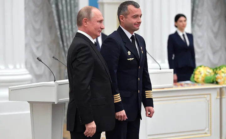Capitão Damir Yusupov recebe o prêmio de Herói da Federação Russa das mãos de Vladimir Putin (Gabinete do Presidente da Rússia)